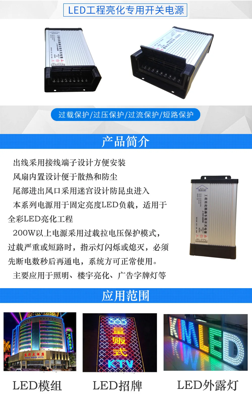 * Universal switching mode power supply. Input: AC 110V~ 220V, 50 / 60Hz ; Output: DC 5V, Max 8.5A 100W. Two output ports. Each port outputs 0~8.5A automatically, 8.5A max in total for 2 ports. The default output voltage is 5V, but it can be regulated by 10%, from 5V.