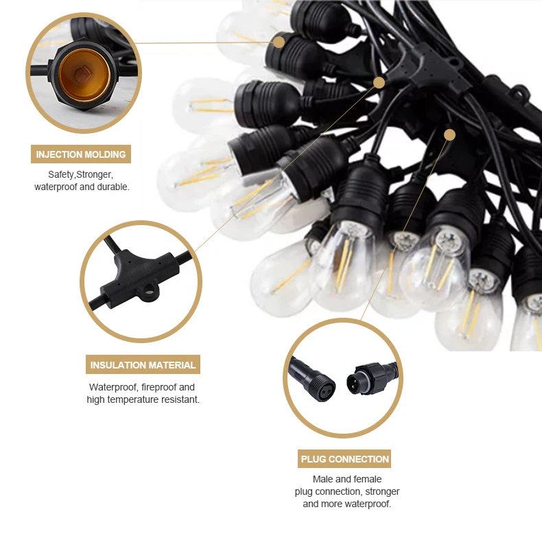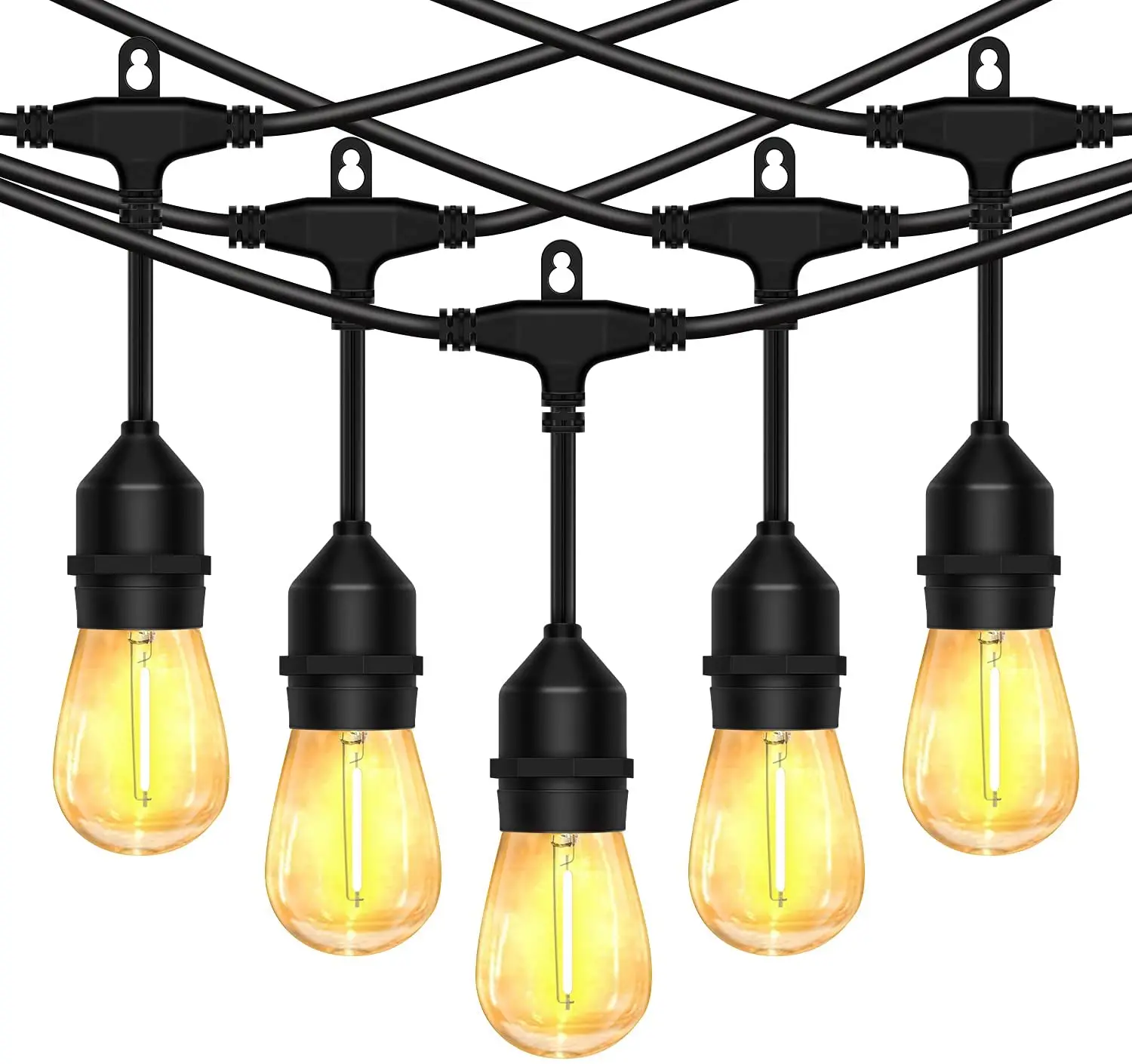 ✔ Ideal Outdoor Lighting with Italian Bistro Style: Each strand contains E27 based hanging sockets, provided with LED bulbs. The distance between bulbs is approximately 0.9 m.