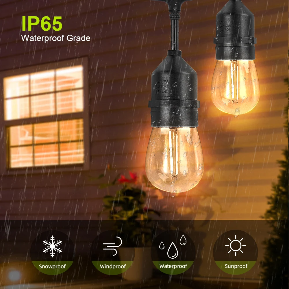 ✔ Perfect shatterproof Led Bulbs: Outdoor string lights for patio is crafted with heavy-duty weather tight technology + shatterproof plastic 11 hanging LED bulbs. These lights are waterproof and the rubberized, flexible cord is thicker than a traditional rope. Can confidently display these string lights all the year round best choice for outdoor patio lights.