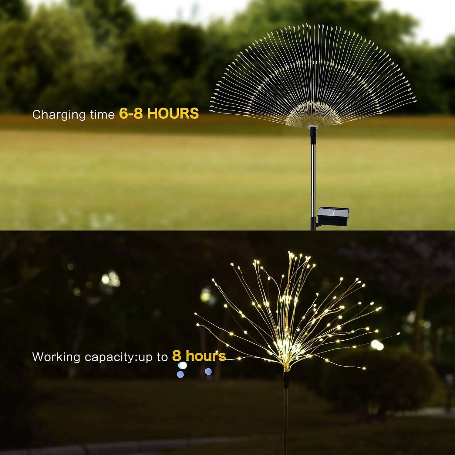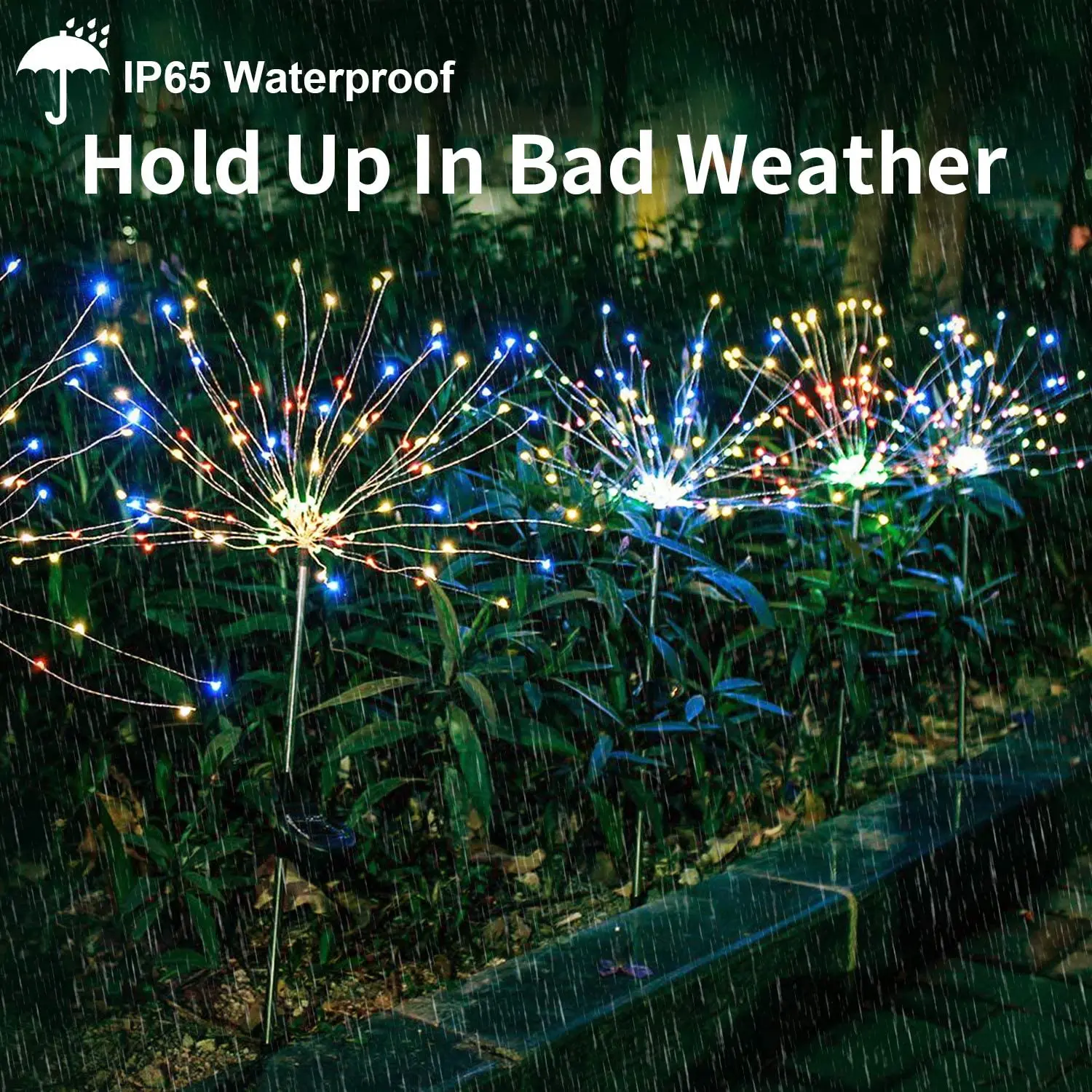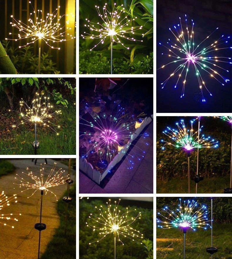 ✔ Energy efficient outdoor waterproof light: Firework Lights are IP67 waterproof. No pollution cold light source with low-energy consumption, won't overheat. The Solar means you don't need tons of outlet in rooms and you can put it anywhere you need. All parts of this string lights are waterproof. They can work excellently even on rainy days. Ideal ornament for outdoor. And it is safe and will not heat after a long time use.