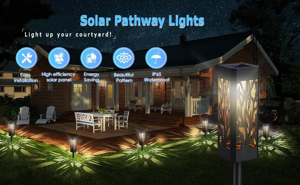 ✔【Solar Garden Lights】Economic design, Solar garden pathway lights has a solar panel. When the switch is turned on, they are automatically charged during the day and turned on at dusk. No request wiring or electricity, save energy.There is a switch ON/OFF on the light cover, make sure you turn the switch to ON position before charging.