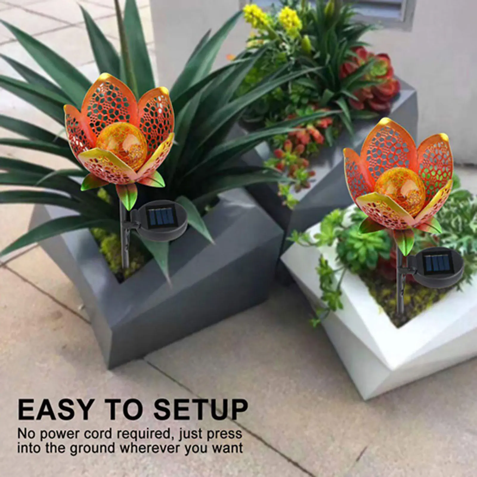 ♔ Elegant design: the powered flower garden lights made of weather-resistant metal glass. this outdoor solar lights provides an amazing star pattern effect on the wall.PLEASE NOTE:the bulb inside the lantern will have a CRACK DISPLAY. This is NOT a damage product, it is a design element.There are 2 wires at the bottom of the lamp holder to support this lamp. If the ball falls, you can try to install it.