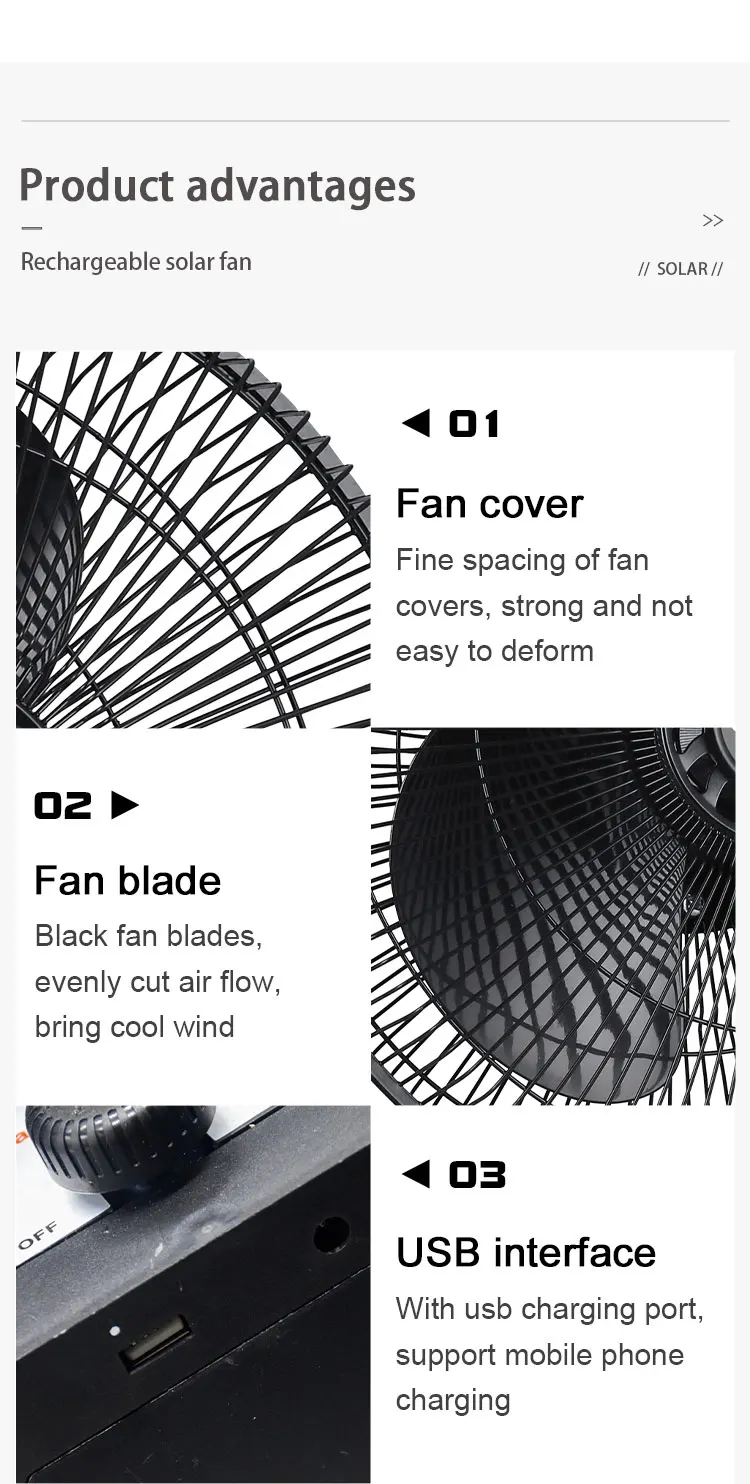✔ This 12-Inch high-powered fan offers quiet operation at each of its 3 speeds, while a digital speed adjustment allows for easy control over the airflow. Rail-style legs provide support no matter what angle the fan is pointing, making it suitable for just about any room or job siteBuilt-in rechargeable 18650 Lithium 12000 mah lithium battery can last over 3-5 hours on a single charge. It is enough to support one day of cooling. And with a 9V 1.5A USB Port, supports to charge a phone or other device from this fan.