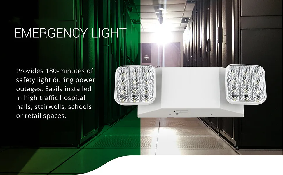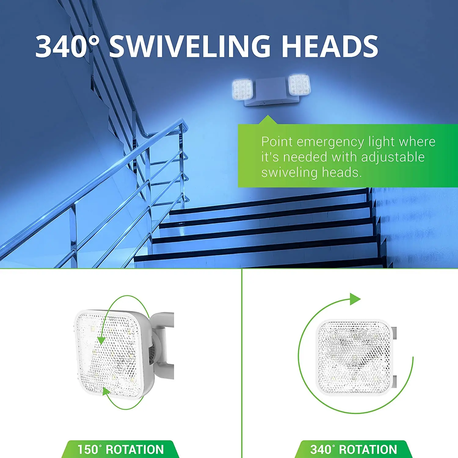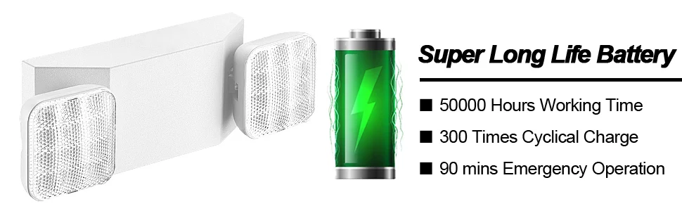 * SAFETY LIGHTING comercial emergency light fixtures with 50000 hours life time and flexible 360°rotation twin head lights, can light up every corner of the darkness.
