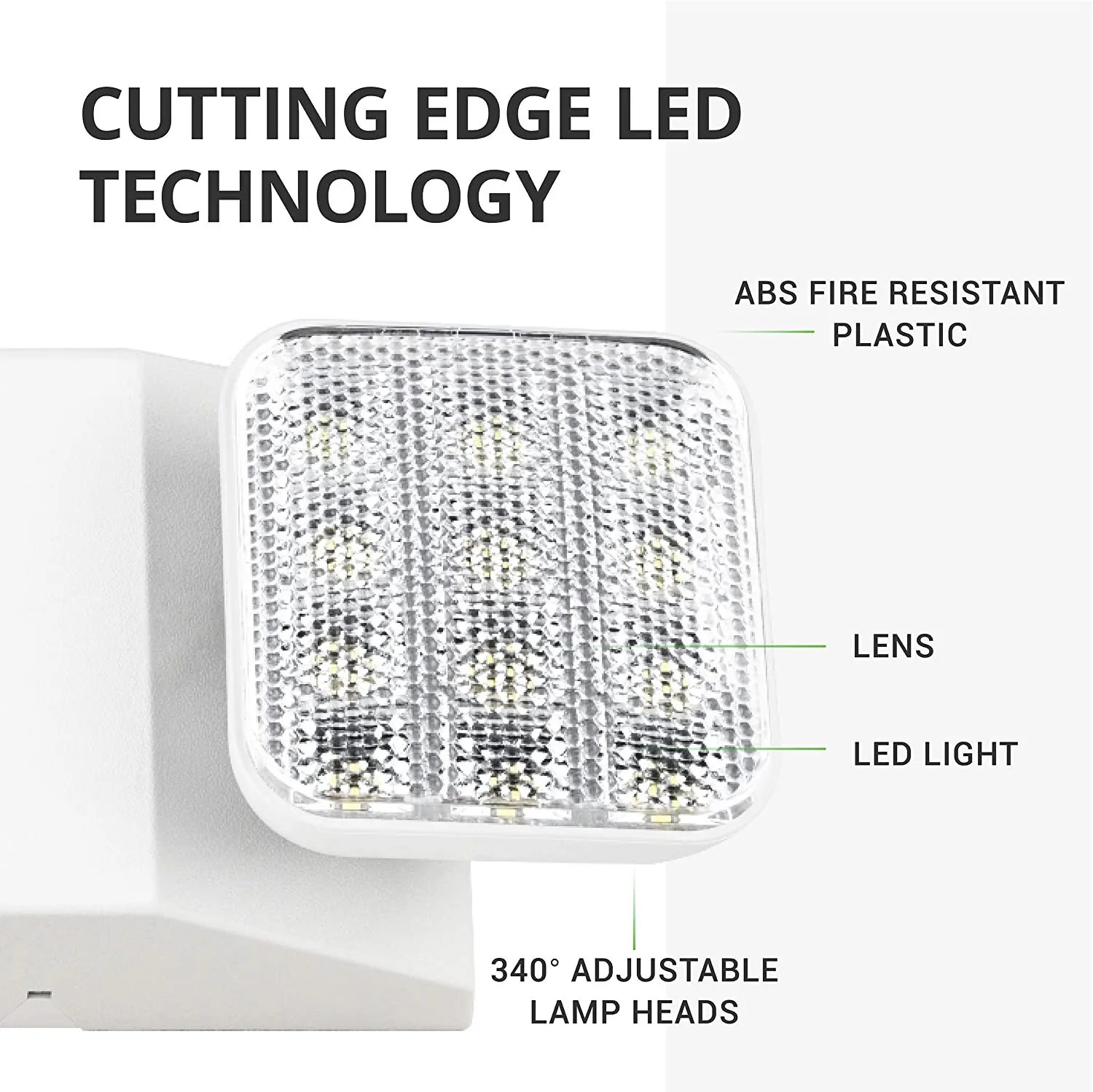✔ INTENSE PRESENCE - The emergency lights use long-lasting, efficient ultra bright white LEDs. Fully adjustable 2.4W LED lamp Heads equipped with 12 series-parallel white LEDs each. Standard mounting height of 7.5ft.