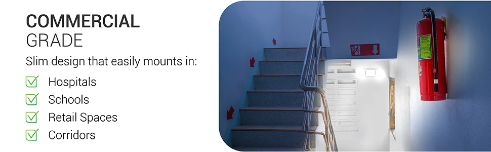 ✔ STANDARD - Injection-molded, flame-retardant and high impact thermoplastic housing. This led emergency light Meets CEC, DEO Compliant, it's great for placing on stairways, hallways, doorways, isles, restaurant, office building and warehouses.