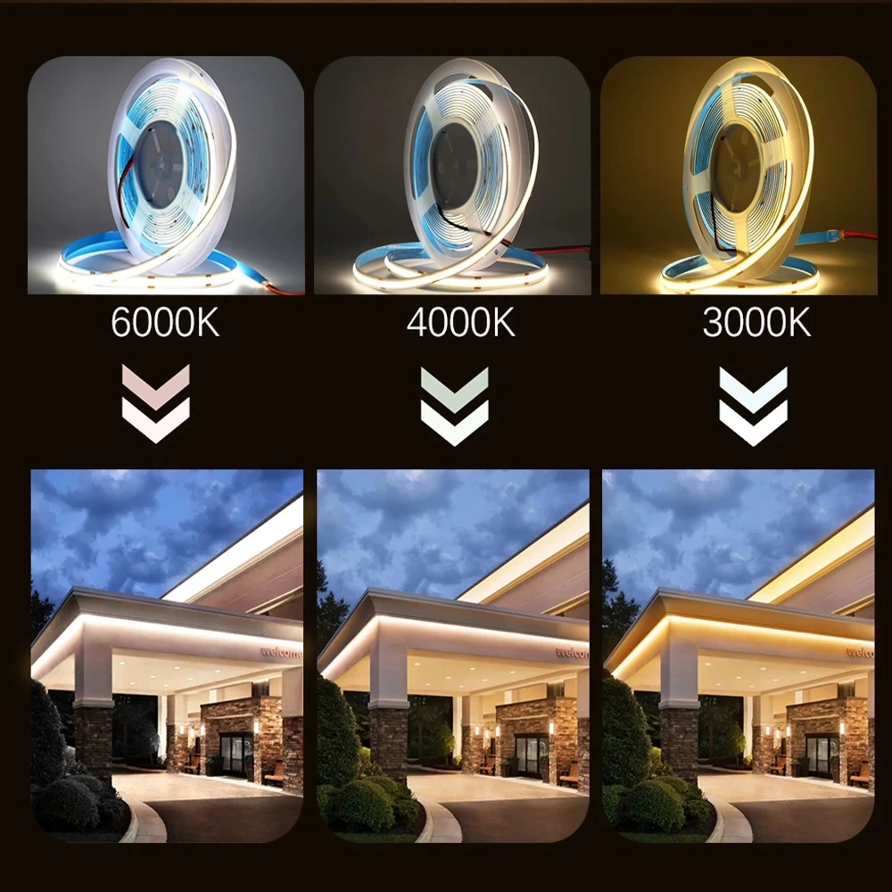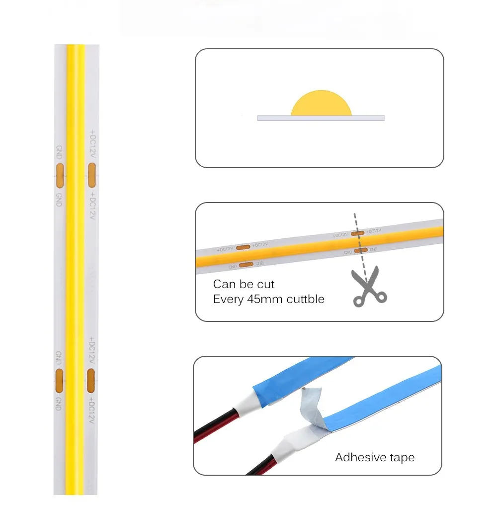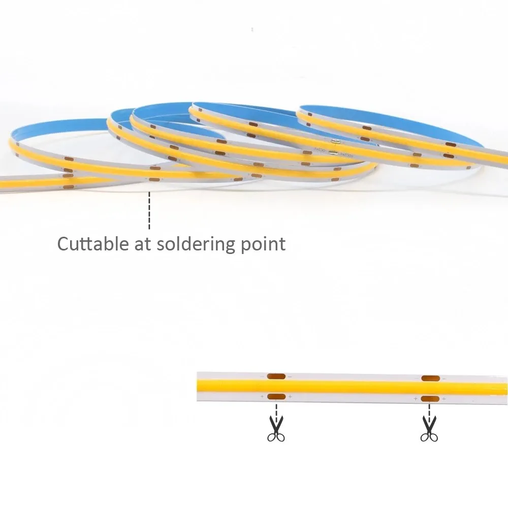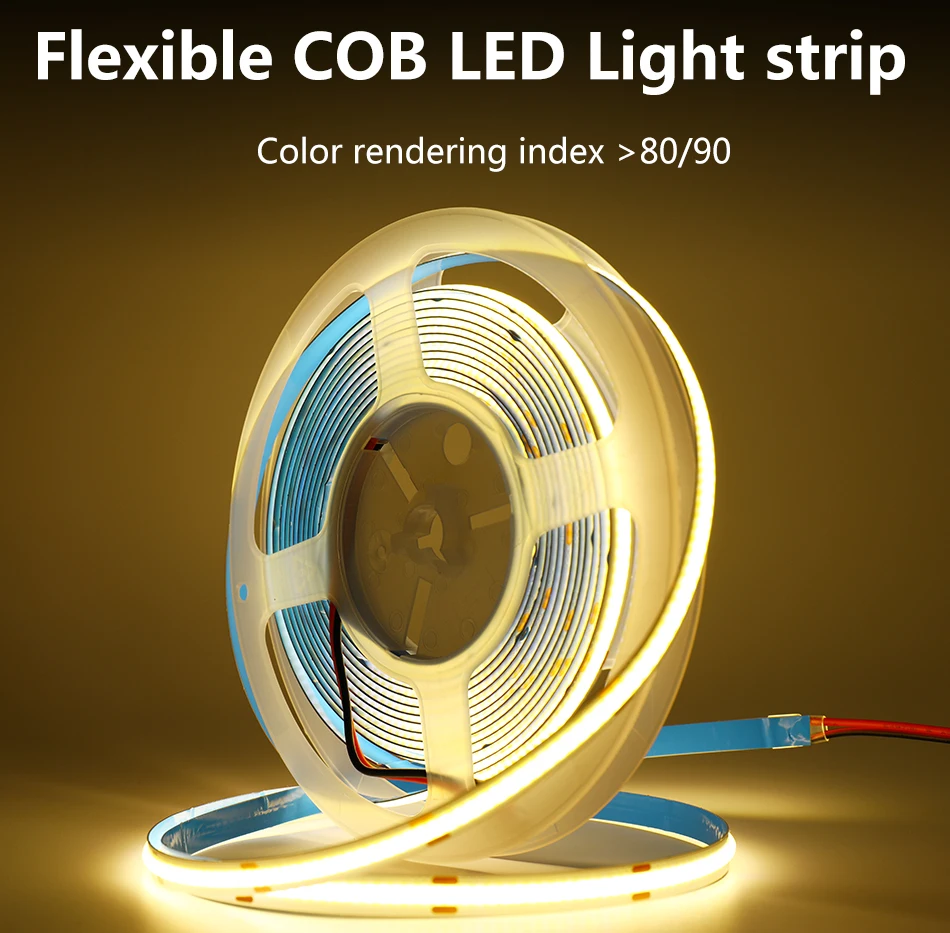 Healthy and environmental PROTECTION- COB LED Strip has COB luminous surface, the light is even and soft with good effect. Comfortable and soft, harmless for skin and eyes.