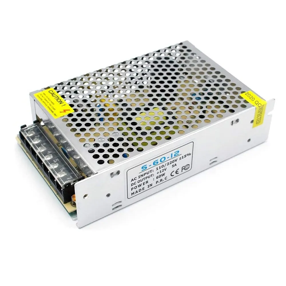 * Universal switching mode power supply. Input: AC 110V~ 220V, 50 / 60Hz ; Output: DC 12V, Max 5A 60W. Two output ports. Each port outputs 0~5A automatically, 5A max in total for 2 ports. The default output voltage is 12V, but it can be regulated by 10%, from 10.8V to 13.2V.