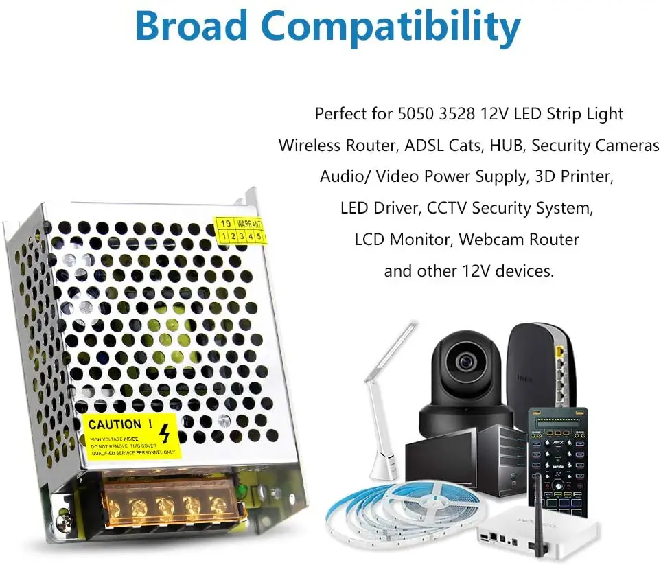 * Universal switching mode power supply. Input: AC 110V~ 220V, 50 / 60Hz ; Output: DC 12V, Max 30A 360W. Two output ports. Each port outputs 0~30A automatically, 30A max in total for 2 ports. The default output voltage is 12V, but it can be regulated by 10%, from 10.8V to 13.2V.