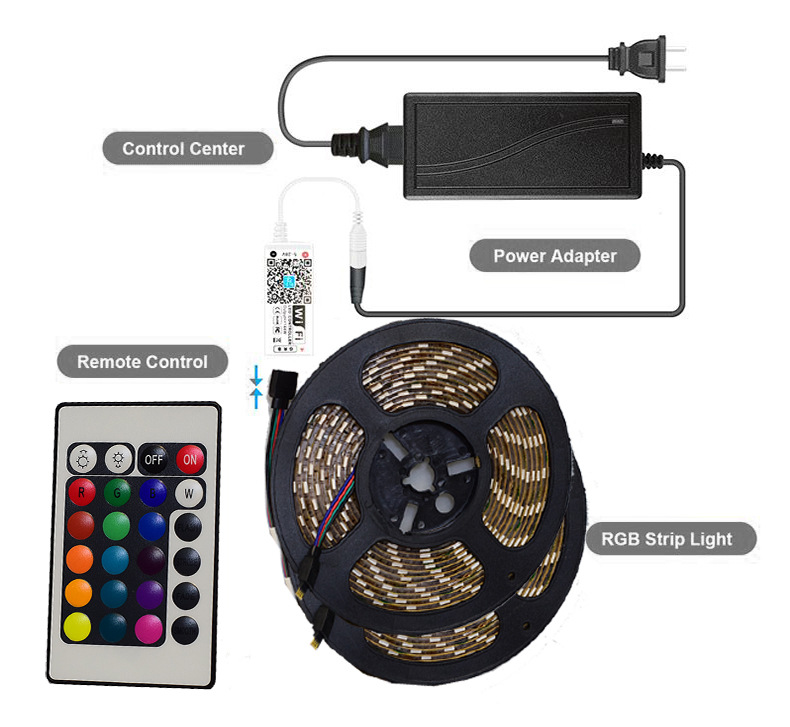 * 【Easy installation】: Comes with a wifi controller and a mini IR remote, a safety approved power adapter and 2 rolls * 5 Meters waterproof led strips lights. Please contact with us if you have any uncertainties about the wifi Controller.