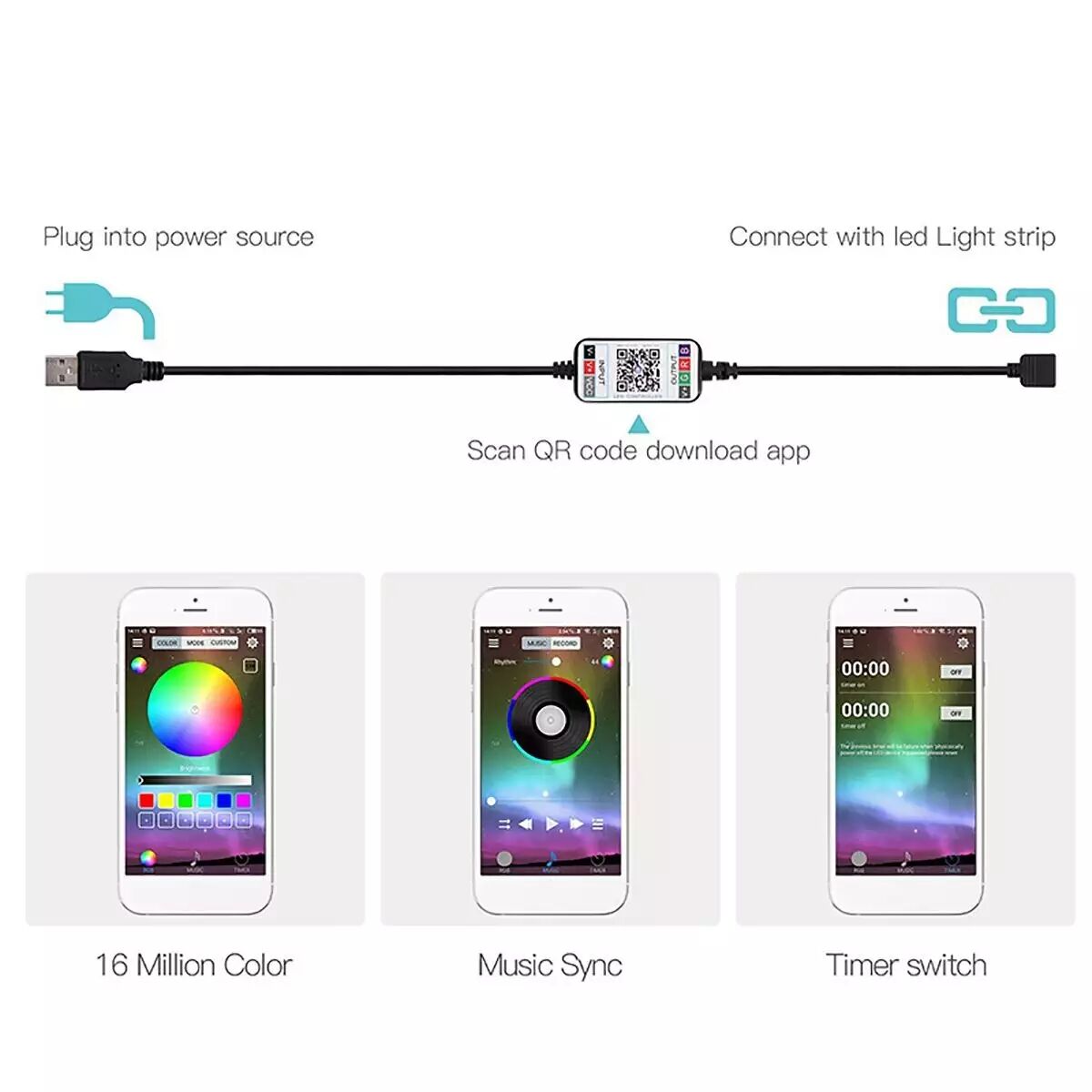 1). LED Strip Lights:The LED lights strip total length is 3 M/9.8 ft, RGB color changeable LED lights, the lights work with 5V, Very convenient to use and touch,