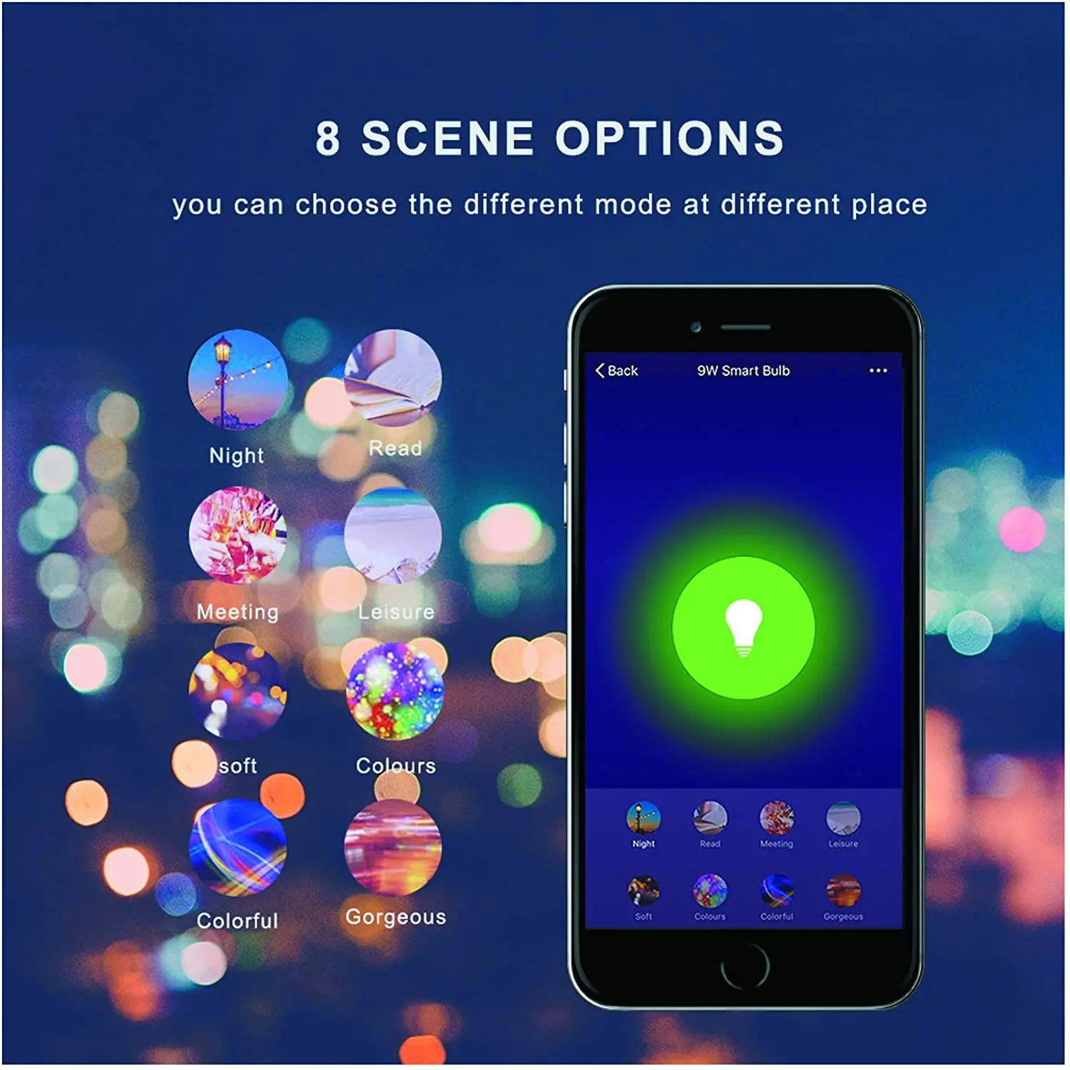 2. Alexa and Google home - - E26 smart LED bulbs are also compatible with Amazon Alexa and Google home, voice commands help to turn on/off the bulb, adjust brightness, change colors etc.